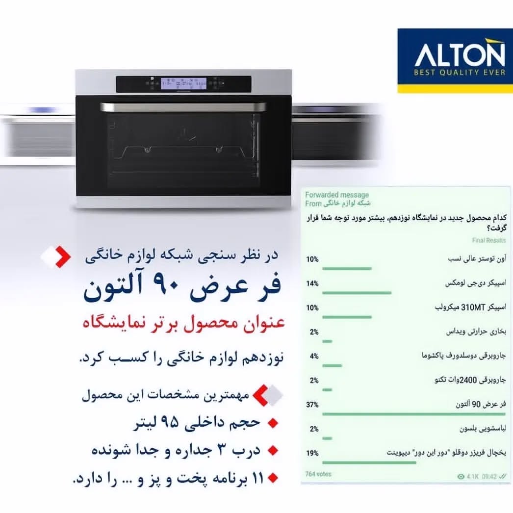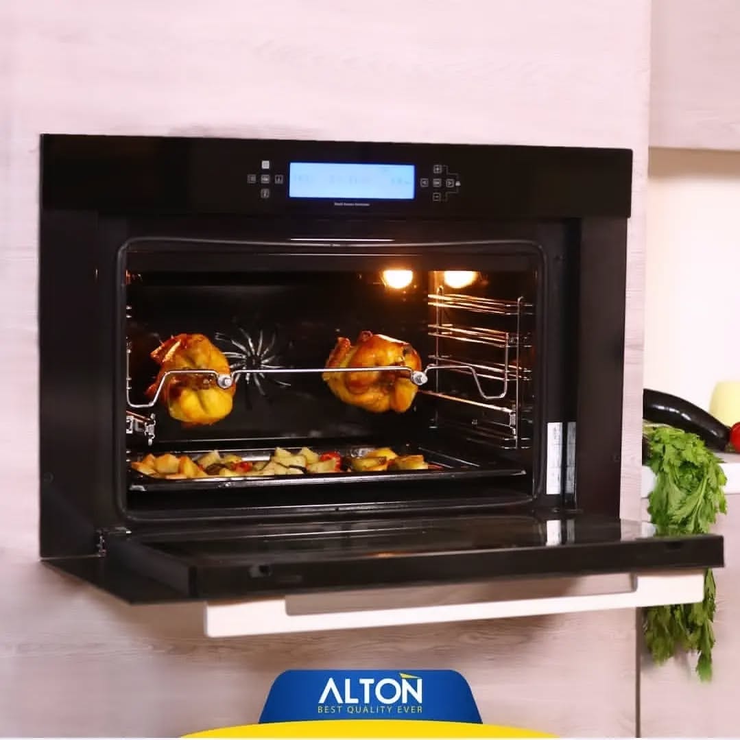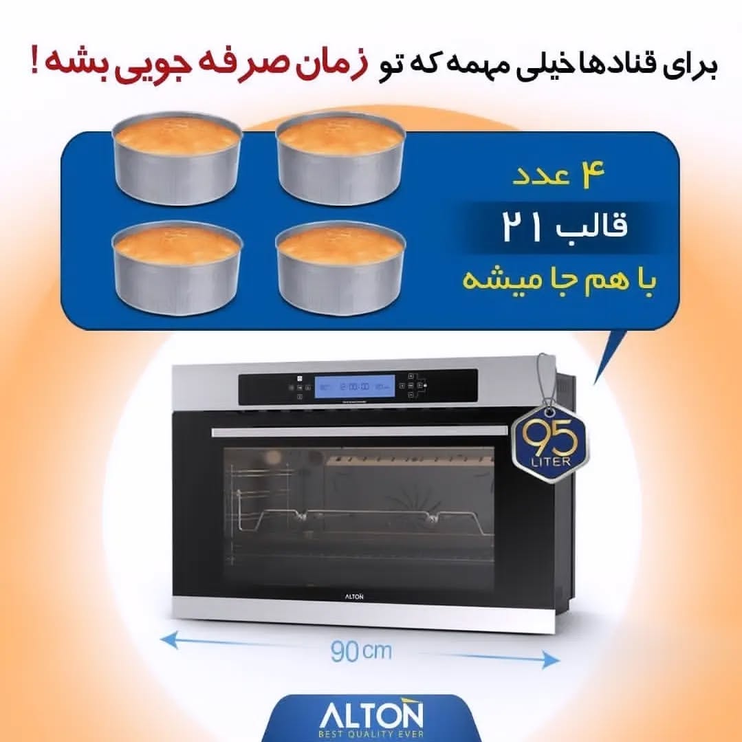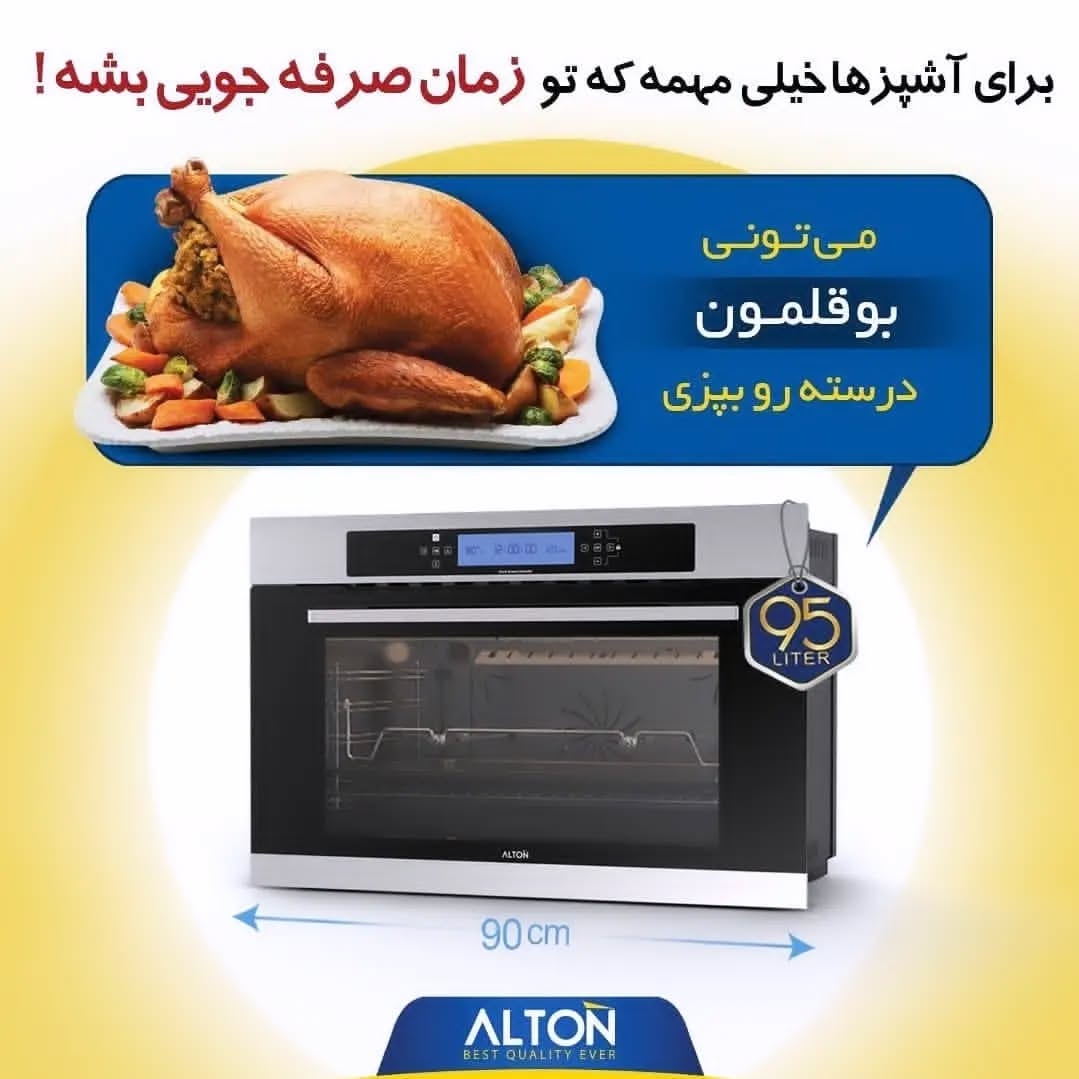 فرهای سری 900 آلتون با عرض 90 سانت و حجم داخلی قابلیت طبخ همزمان 2 عدد مرغ بزرگ را در سینی فر یا با جوجه گردان فراهم می کند. مشخصات شامل پوشش داخلی آسان تمیز شونده، درب 3 جداره و قابل شستشو، فن گردش هوای داغ، سنسور حسگر پخت گوشت، 2 عدد جوجه گردان، لولای آرام بند، صفحه نمایشگر دیجیتال و 10 عملکرد پخت.