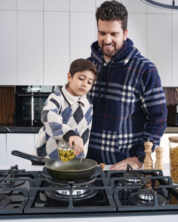 - قابلیت کنترل مجزای شعله گاز؛ این سیستم شامل ۹ مرحله تنظیم شعله است که به شما امکان استفاده از حرارت ملایم برای پخت آرام غذا تا حرارت بالا برای سرخ کردن و جوشاندن را فقط با چرخاندن ولوم میدهد.